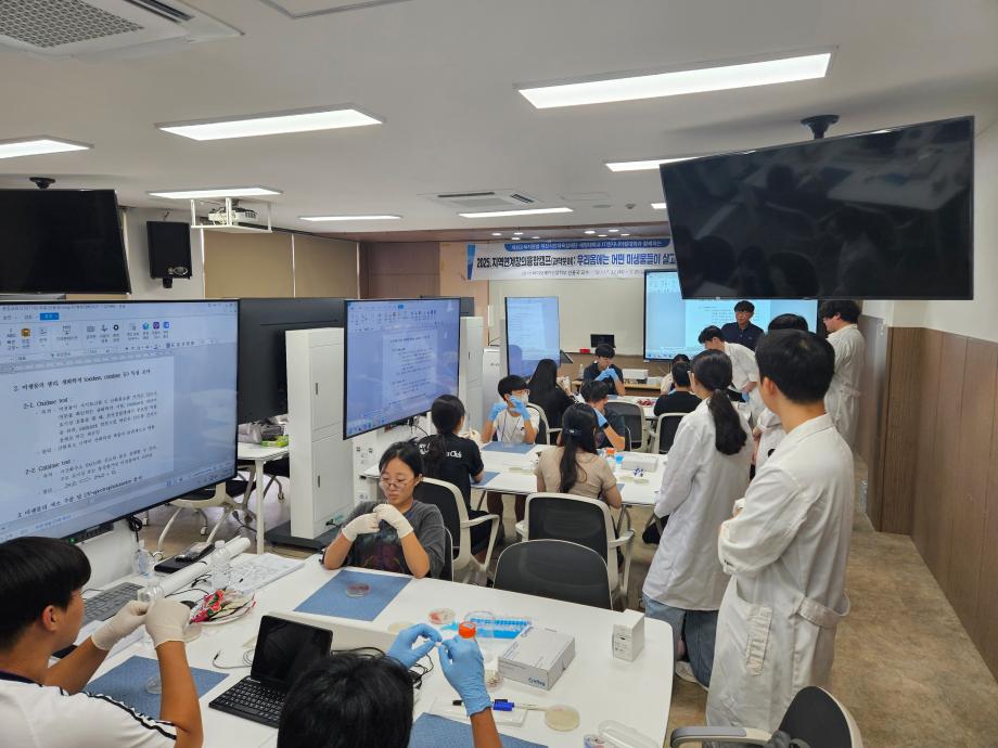 본문 시작 홈으로 학부자료실 학부소개 교육과정 학부공지게시판 학부자료실 홈페이지가이드 학부행사 및 사진게시판 학부행사 및 사진게시판 학생회 소개 학부행사 및 사진게시판 페이스북 트위터 프린트 바이오제약산업학부 지역연계 창의 융합 캠프 바이오제약산업학부 1159 2025-07-24 2025년 7월23일(화) 이공학관 404호에서 1일차 지역연계 창의융합캠프가 열렸습니다. 바이오제약산업학부 신용국교수님께서 제천지역 중학교 3학년 학생들과 함께 이틀간 ‘우리 몸에는 어떤 미생물이 살고 있을까?’라는 주제로 강의와 미생물관찰 실습을 진행합니다. 바이오제약산업학부는 지역 학생들의 과학에 대한 관심을 고양하고 진로를 선택하는데 도움을 주고자 합니다. 목록 이전바이오제약산업학부 여름방학 특별활동 다음 바이오제약산업학부 GC-MS 및 LC-MS 실습을 통한 의약품 및 천연물소재 분석 교육 담당부서 : 바이오제약산업학부 담당자 : - 연락처 : 043-649-1729 최종수정일 : 2024-10-26 만족도조사 만족도 조사 이 페이지에서 제공하는 정보에 대하여 만족하시나요? 매우만족 만족 보통 불만족 매우불만족