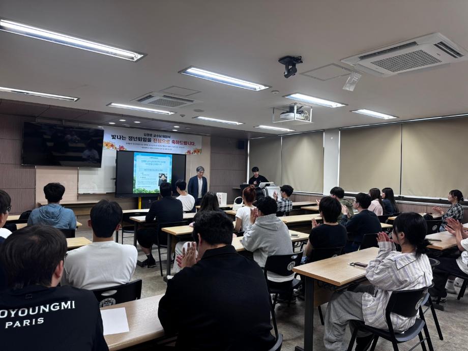 이번 마지막 강의는 교수님의 학문적 열정과 따뜻한 인간미가 담긴 뜻 깊은 시간이었으며, 강의 후 진행된 정년퇴임식에서는 교수님의 그간의 노고에 대한 감사와 존경의 마음을 전하는 자리가 되었습니다.
