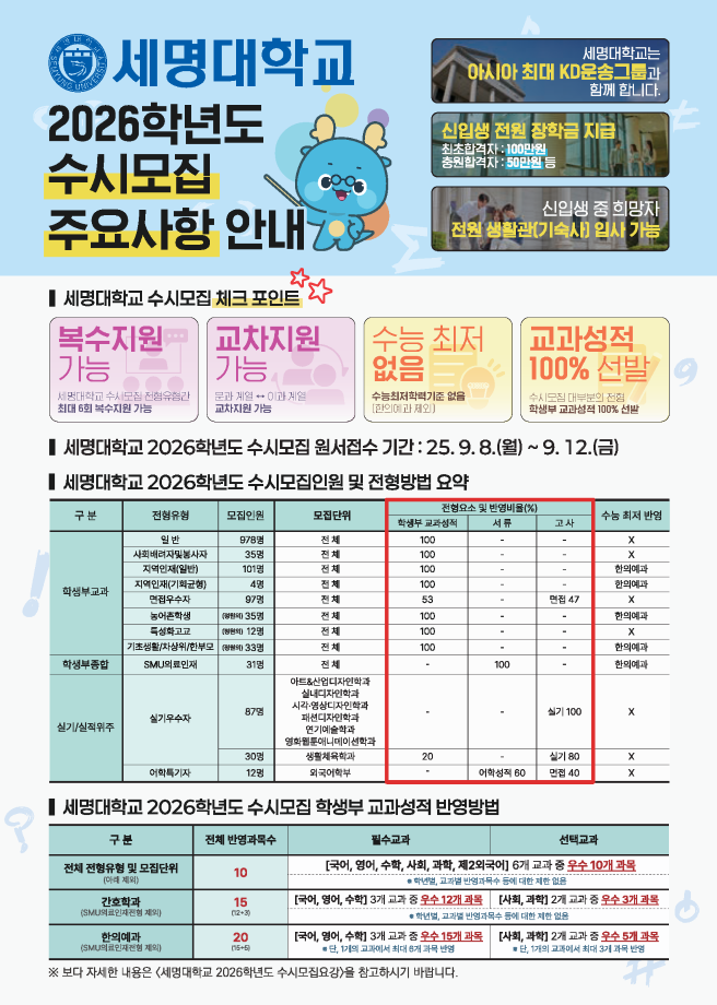 본문 시작 홈으로 학부활동 학부소개 학부활동 교육과정 커뮤니티 학부생활 입학안내 홈페이지가이드 학부갤러리 학부행사 학생회 활동 전공 동아리 학부갤러리 학부갤러리 페이스북 트위터 프린트 2026학년도 수시모집 주요사항 전체관리자 733 2025-09-03 2026학년도 수시모집 주요사항 안내 목록 이전컴퓨터학부 소개 다음 컴퓨터학부 윈도우즈프로그래밍 전공 실습 담당부서 : 컴퓨터학부 담당자 : - 연락처 : 043-649-1272 최종수정일 : 2024-10-26 만족도조사 만족도 조사 이 페이지에서 제공하는 정보에 대하여 만족하시나요? 매우만족 만족 보통 불만족 매우불만족