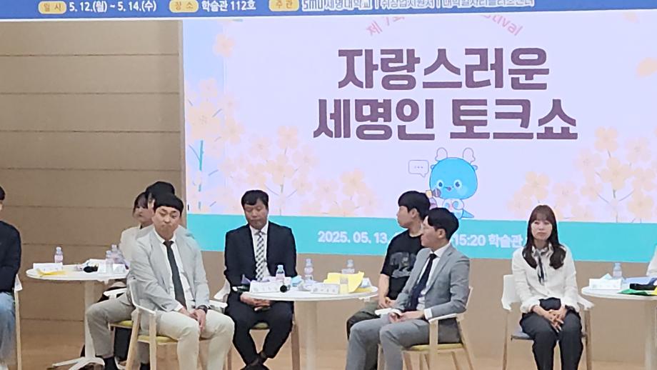 본문 시작 홈으로 커뮤니티 학과소개 교수소개 학과과정 커뮤니티 홈페이지가이드 포토갤러리 학과공지 채용정보 학과일정 포토갤러리 전공자료실 정보자료실 포토갤러리 페이스북 트위터 프린트 자랑스러운 세명인 토크쇼 전기공학과 1664 2025-05-15 2025년 5월 13일(화) 학술관 112호에서 열린 자랑스러운 세명인 토크쇼에 현재 한국철도공사(코레일)에서 전기기술팀장으로 근무하고 계신 황윤철(98학번_전기공학과) 졸업생을 모셨습니다. 목록 이전2025 농촌 봉사활동 담당부서 : 전기공학과 담당자 : - 연락처 : 043-649-1307 최종수정일 : 2024-10-26 만족도조사 만족도 조사 이 페이지에서 제공하는 정보에 대하여 만족하시나요? 매우만족 만족 보통 불만족 매우불만족