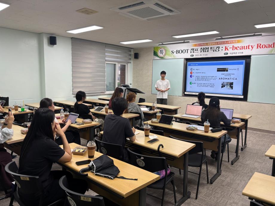 본문 시작 홈으로 커뮤니티 학과소개 학과과정 대학원 커뮤니티 연구동아리 홈페이지가이드 포토갤러리 학과공지 채용정보 학과일정 포토갤러리 유튜브 인스타그램 취업현황 학생회 조직도 졸업생 숏터뷰 포토갤러리 페이스북 트위터 프린트 2025학년도 1차 S-BOOT 특강_K-Beauty Road 바이오코스메틱학과 524 2025-10-13 2025학년도 1차 S-BOOT 특강을 진행하였습니다. 목록 이전2025학년도 1차 화장품생명공학세미나 다음 2025학년도 2차 화장품생명공학세미나 담당부서 : 바이오코스메틱학과 담당자 : - 연락처 : 043-649-1638 최종수정일 : 2024-10-26 만족도조사 만족도 조사 이 페이지에서 제공하는 정보에 대하여 만족하시나요? 매우만족 만족 보통 불만족 매우불만족
