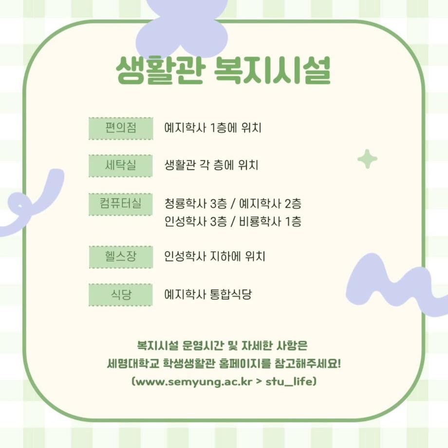 📍기숙사 안엔 편의점, 세탁실, 헬스장, 컴퓨터실까지 완비👌
