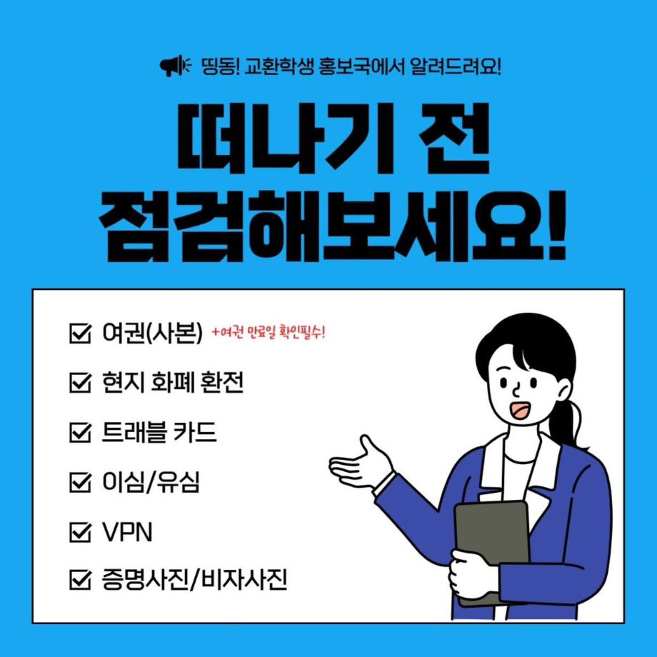 본문 시작 홈으로 커뮤니티 학과소개 입학정보 교과과정 커뮤니티 홈페이지가이드 포토갤러리 SNS 소통 공간 포토갤러리 공지사항 동아리 포토갤러리 페이스북 트위터 프린트 교환학생 체크리스트 항공서비스학과 1430 2025-08-12 안녕하십니까 세명대학교 항공서비스학과 온라인 홍보국 💙푸르미르💙입니다. 교환학생을 가기전 현지에서 꼭 필요한 물건들을 체크해야겠죠?😁 꼭 필요한 물품들을 정리해보았으니 많은 도움이 되길 바랍니다 ! 소중한 꿈을 품고 그 누구보다 높이 오를 여러분을 저희 "푸르미르" 가 항상 응원하겠습니다 ✈💙 궁금한 사항이 있으시다면 언제든지 SNS로 연락 주십시오 💬 #세명대학교 #항공서비스학과 #세명대 #항공과 #푸르미르 #교환학생 목록 이전💙에어로케이 객실승무원 취업💙 다음 🧡제주항공 객실승무원 취업🧡