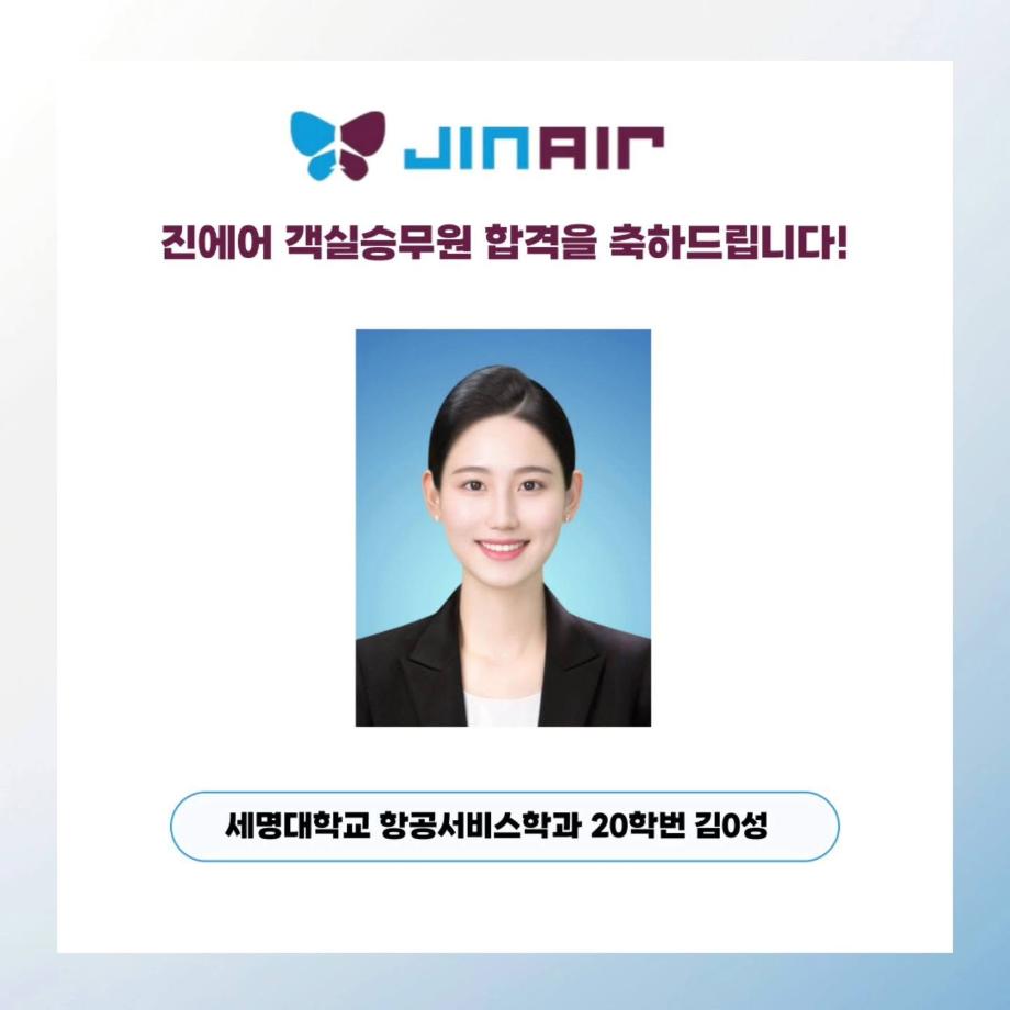20학번 김O성 선배님께서 💚진에어항공 객실 승무원 💚에 자랑스럽게 최종합격 하셨습니다