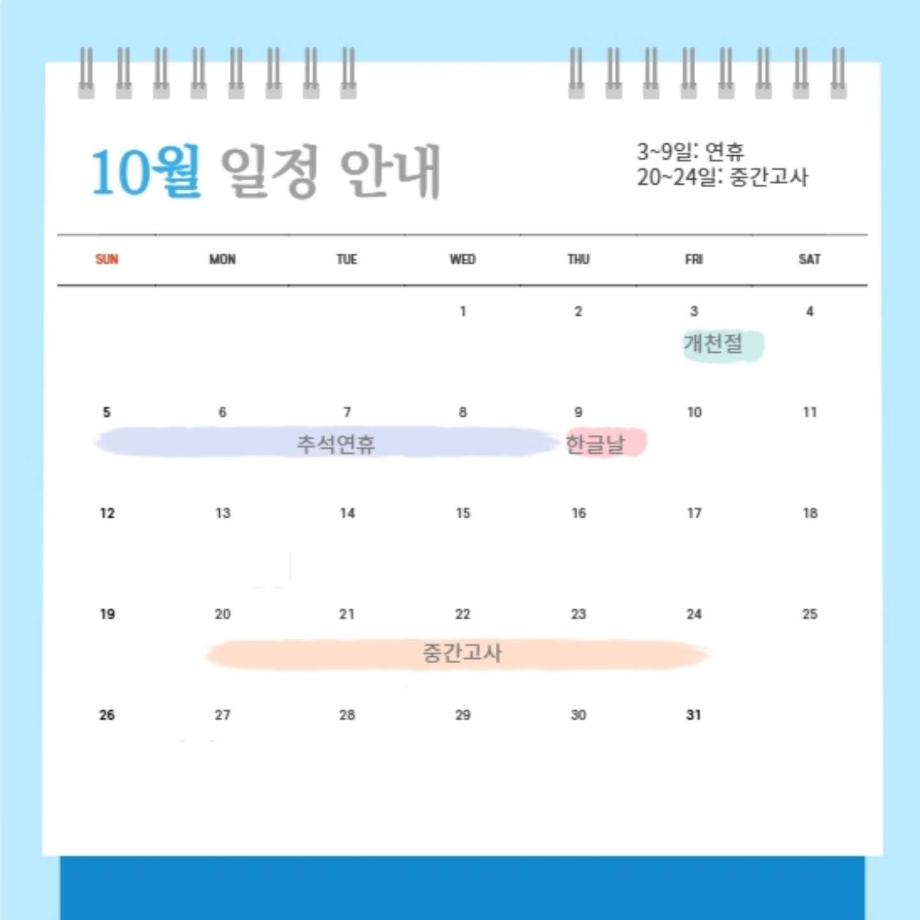 본문 시작 홈으로 커뮤니티 학과소개 입학정보 교과과정 커뮤니티 홈페이지가이드 포토갤러리 SNS 소통 공간 포토갤러리 공지사항 동아리 포토갤러리 페이스북 트위터 프린트 10월 다이어리 항공서비스학과 1154 2025-10-06 안녕하십니까 세명대학교 항공서비스학과 온라인 홍보국 💙푸르미르💙입니다. 10월에는 추석연휴와 중간고사가 있습니다! 확인하시고 일정에 착오 없으시길 바라겠습니다 😊 즐거운 연휴 보내세요🙇♂️ 소중한 꿈을 품고 그 누구보다 높이 오를 여러분을 저희 "푸르미르" 가 항상 응원하겠습니다 ✈💙 궁금한 사항이 있으시다면 언제든지 SNS로 연락 주십시오 💬 #세명대학교 #항공서비스학과 #세명대 #항공과 #푸르미르 #다이어리 목록 다음 제주항공 에듀윙 Advanced class 다음 가을 맞이 일상 사진