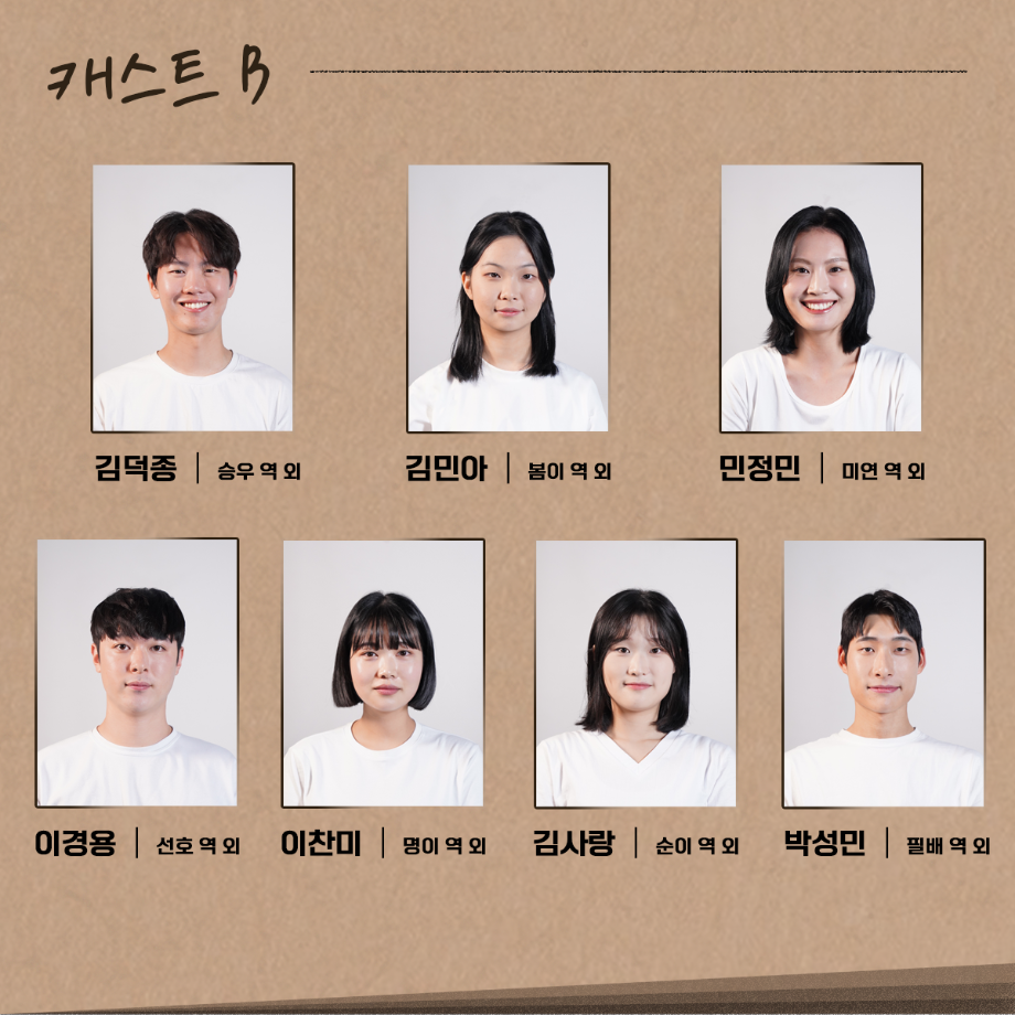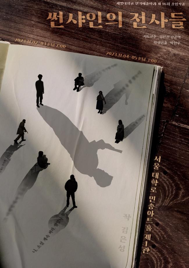 본문 시작 홈으로 커뮤니티 학과소개 입학정보 교수소개 학과과정 커뮤니티 공연예매 안내 홈페이지가이드 포토갤러리 공지사항 포토갤러리 작품DB 동아리 학사일정 학생회 포토갤러리 페이스북 트위터 프린트 제 16회 세명대학교 연기예술학과 졸업작품 <썬샤인의 전사들> 포스터 & 캐스트 연기예술학과 3230 2023-10-31 2023. 11. 02. CAST A 2023. 11. 03. CAST B 2023. 11. 04. CAST A 2023. 11. 05. CAST B 서울 대학로 민송아트홀 1관 목록 이전2023 공연예술 전공자를 위한 취업 특강 다음 학습법 특강 4차 - PPT제작 및 스피치 노하우 담당부서 : 연기예술학과 담당자 : - 연락처 : 043-649-1733 최종수정일 : 2024-10-26 만족도조사 만족도 조사 이 페이지에서 제공하는 정보에 대하여 만족하시나요? 매우만족 만족 보통 불만족 매우불만족