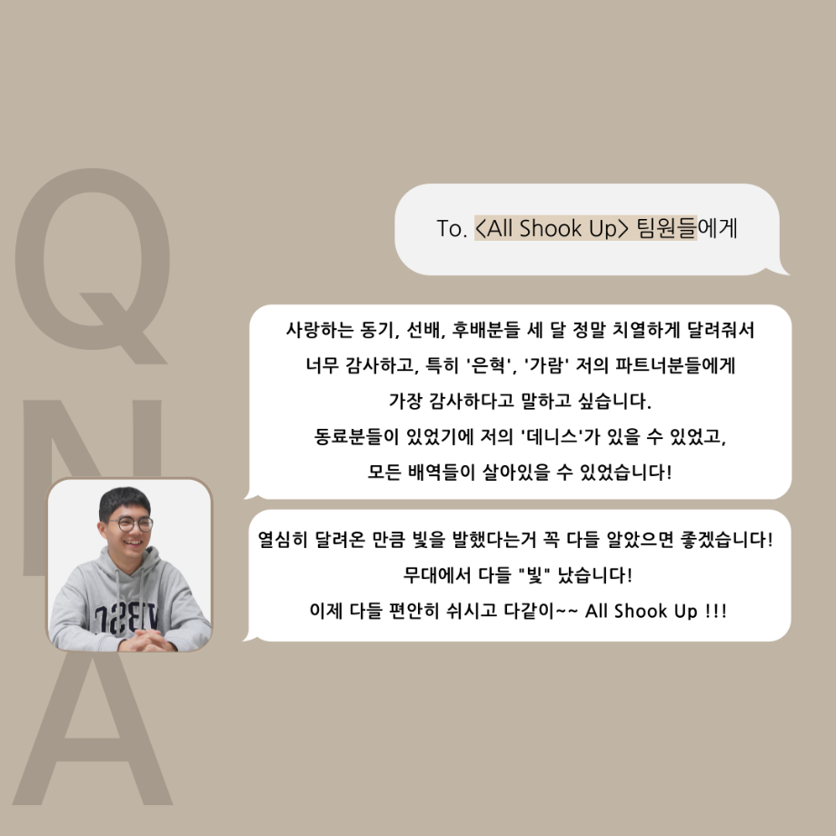 본문 시작 홈으로 커뮤니티 학과소개 입학정보 교수소개 학과과정 커뮤니티 공연예매 안내 홈페이지가이드 포토갤러리 공지사항 포토갤러리 작품DB 동아리 학사일정 학생회 포토갤러리 페이스북 트위터 프린트 ‘품’ 위 있는 인 ‘터뷰’ - 뮤지컬 제작실습 <올슉업> 데니스정지운 카드 뉴스 연기예술학과 2577 2025-01-17 . 목록 이전‘품’ 위 있는 인 ‘터뷰’ - 뮤지컬 제작실습 <올슉업> 나탈리 안수연 카드 뉴스 다음 2024학년도 공연영상학과 (현 연기예술학과) 학과수여식 담당부서 : 연기예술학과 담당자 : - 연락처 : 043-649-1733 최종수정일 : 2024-10-26 만족도조사 만족도 조사 이 페이지에서 제공하는 정보에 대하여 만족하시나요? 매우만족 만족 보통 불만족 매우불만족