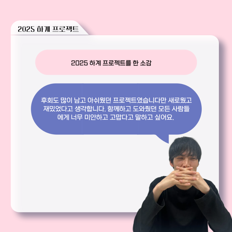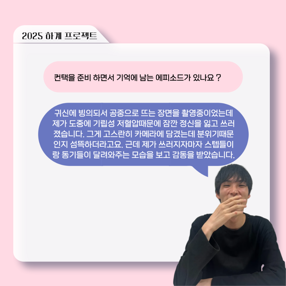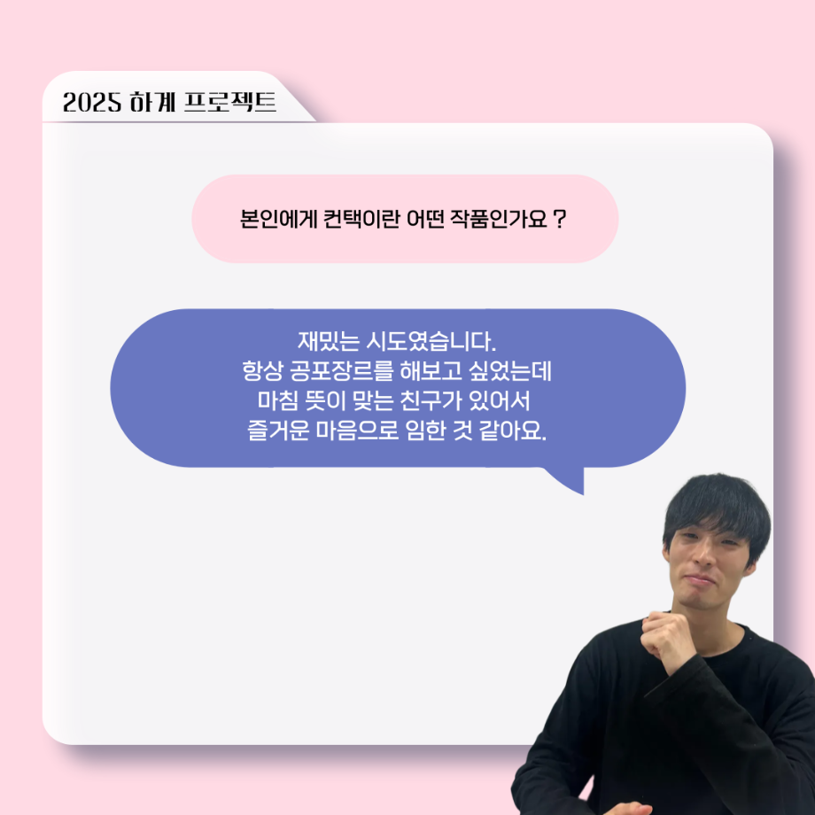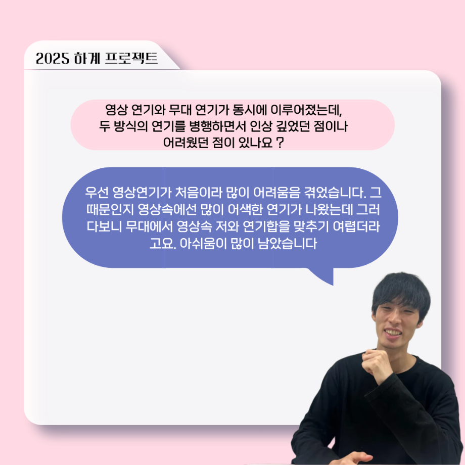 본문 시작 홈으로 커뮤니티 학과소개 입학정보 교수소개 학과과정 커뮤니티 공연예매 안내 홈페이지가이드 포토갤러리 공지사항 포토갤러리 작품DB 동아리 학사일정 학생회 포토갤러리 페이스북 트위터 프린트 ‘늘‘ 궁금한 이야기 - 하계 프로젝트 ‘컨택’팀 고진役 < 조진석 > 연기예술학과 1477 2025-10-31 . 목록 이전‘늘‘ 궁금한 이야기 - 현장실습 < 신하연 > 다음 세명대학교 연기예술학과 과체전 담당부서 : 연기예술학과 담당자 : - 연락처 : 043-649-1733 최종수정일 : 2024-10-26 만족도조사 만족도 조사 이 페이지에서 제공하는 정보에 대하여 만족하시나요? 매우만족 만족 보통 불만족 매우불만족
