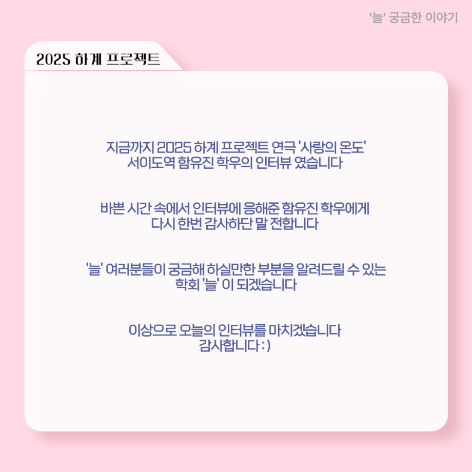 본문 시작 홈으로 커뮤니티 학과소개 입학정보 교수소개 학과과정 커뮤니티 공연예매 안내 홈페이지가이드 포토갤러리 공지사항 포토갤러리 작품DB 동아리 학사일정 학생회 포토갤러리 페이스북 트위터 프린트 ‘늘‘ 궁금한 이야기 - 하계 프로젝트 ‘사랑의 온도’팀 서이도役 < 함유진 > 연기예술학과 563 2025-11-10 . 목록 이전세명대학교 연기예술학과 과체전 다음 ‘늘‘ 궁금한 이야기 - 하계 프로젝트 ‘사랑의 온도’팀 주지환役 < 신승현 > 담당부서 : 연기예술학과 담당자 : - 연락처 : 043-649-1733 최종수정일 : 2024-10-26 만족도조사 만족도 조사 이 페이지에서 제공하는 정보에 대하여 만족하시나요? 매우만족 만족 보통 불만족 매우불만족